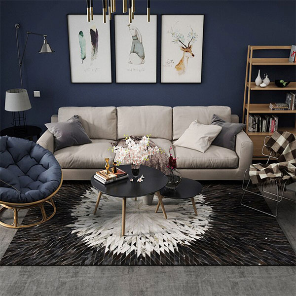 New Large Cowhide Rug Patchwork Cow skin Cow Hide Leather Carpet Black free shipping